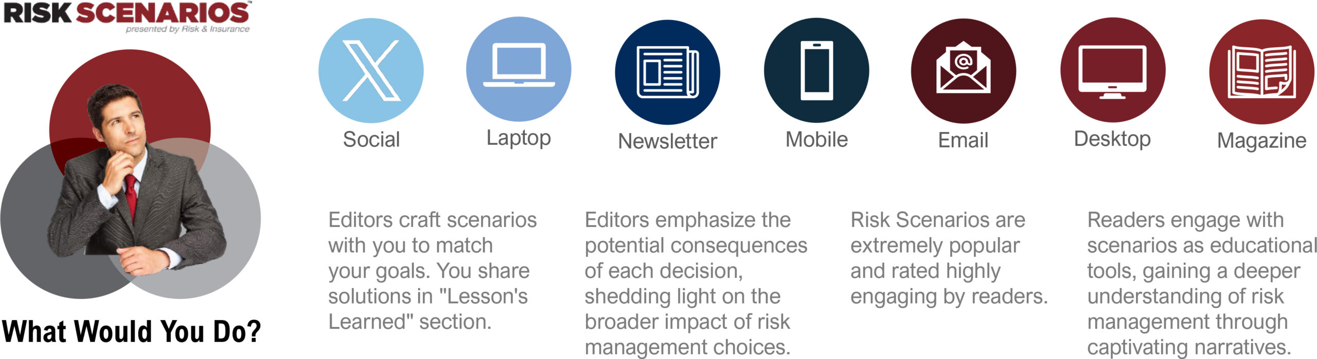 Challenge: Risk Scenarios is our most differentiated and popular editorial offering. The unique approach provides our editors and partners with an engaging platform that can dig deeper into complex risk situations than a more traditional article.  Leveraging the creative potential of this approach for a live event seemed like the natural next step.