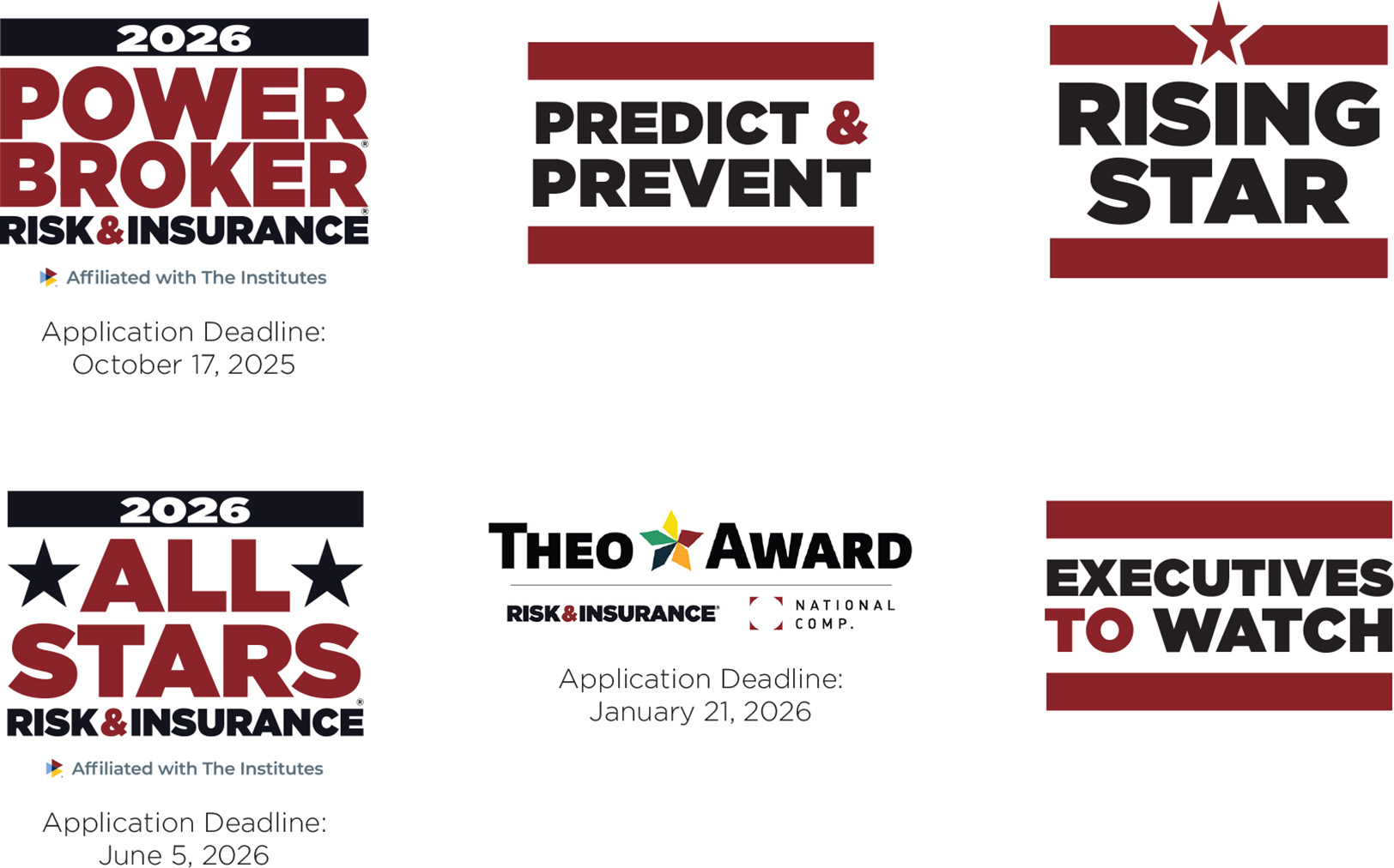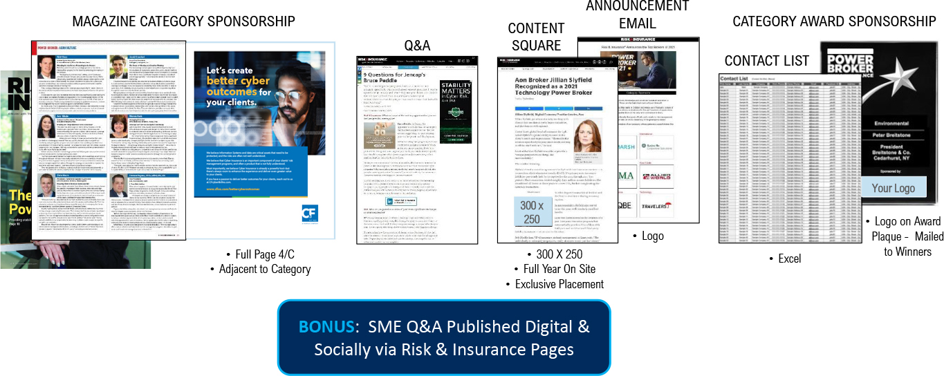 Branded Content & Awards: Power Broker, Emerging Risks, Rising Stars, All-Stars, Global Risks, Theo Awards, Cat & Resiliency, Workers’ Comp Executives to Watch, Insurance Leaders to Watch